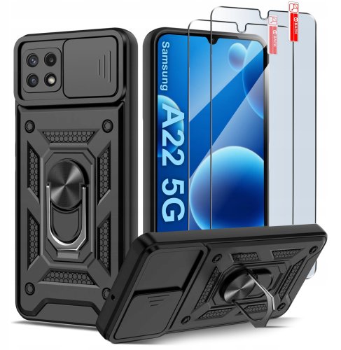 Etui Pancerne CZARNE SLIDE do Samsung A22 5G WZMACNIANE + 2x Szkło 9H