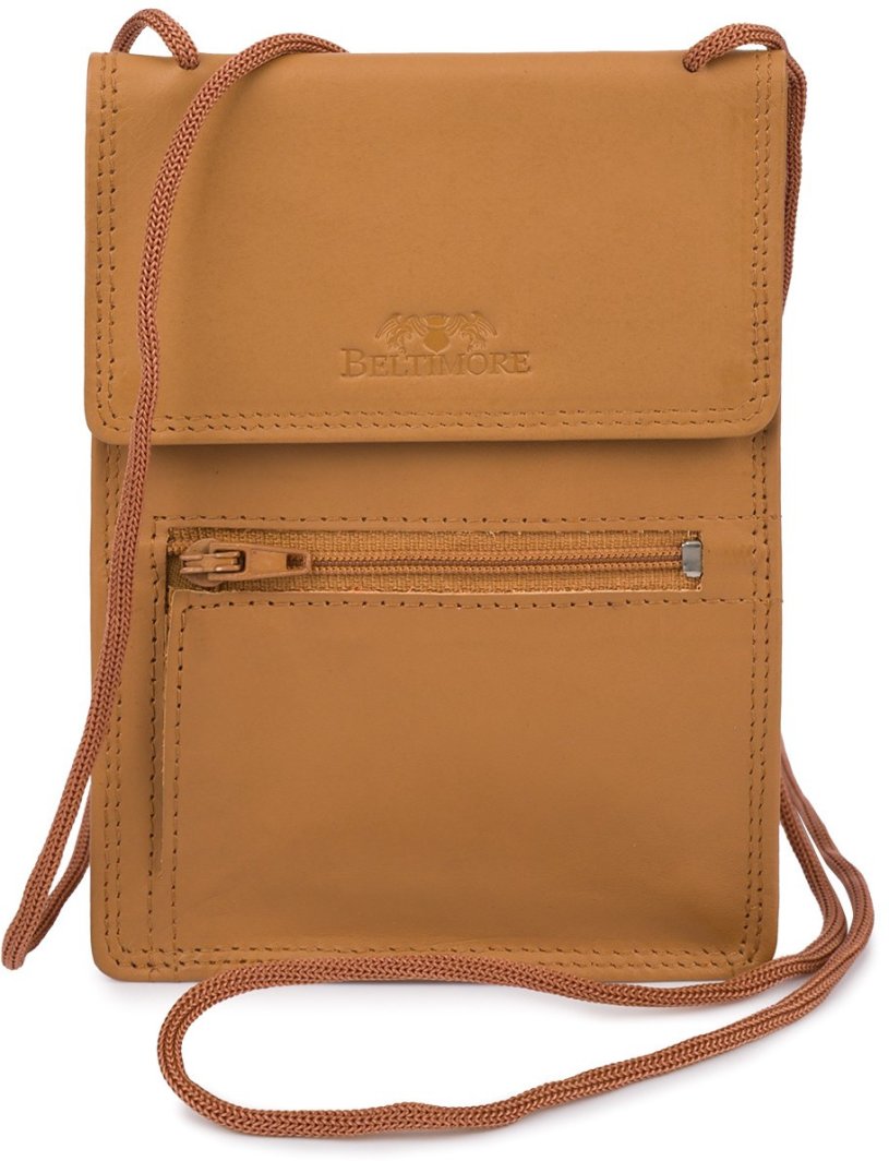ETUI saszetka PASZPORTÓWKA na szyję dokumenty skórzana podróżna jasny brąz Beltimore D78