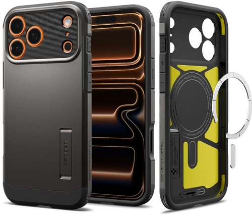 W zestawie znajduje się etui Spigen Tough Armor T Mag, które zapewnia kompleksową ochronę i styl dla Twojego iPhone'a 17 Pro.