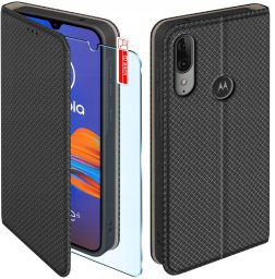 Etui z klapką do Motorola Moto E6 Plus Zamykane Czarne Futerał + Szkło 9H