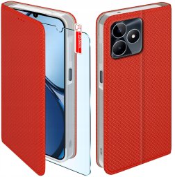 Etui z klapką do Realme C53 | C51|NOTE 50 Zamykane Czerwone Futerał +Szkło