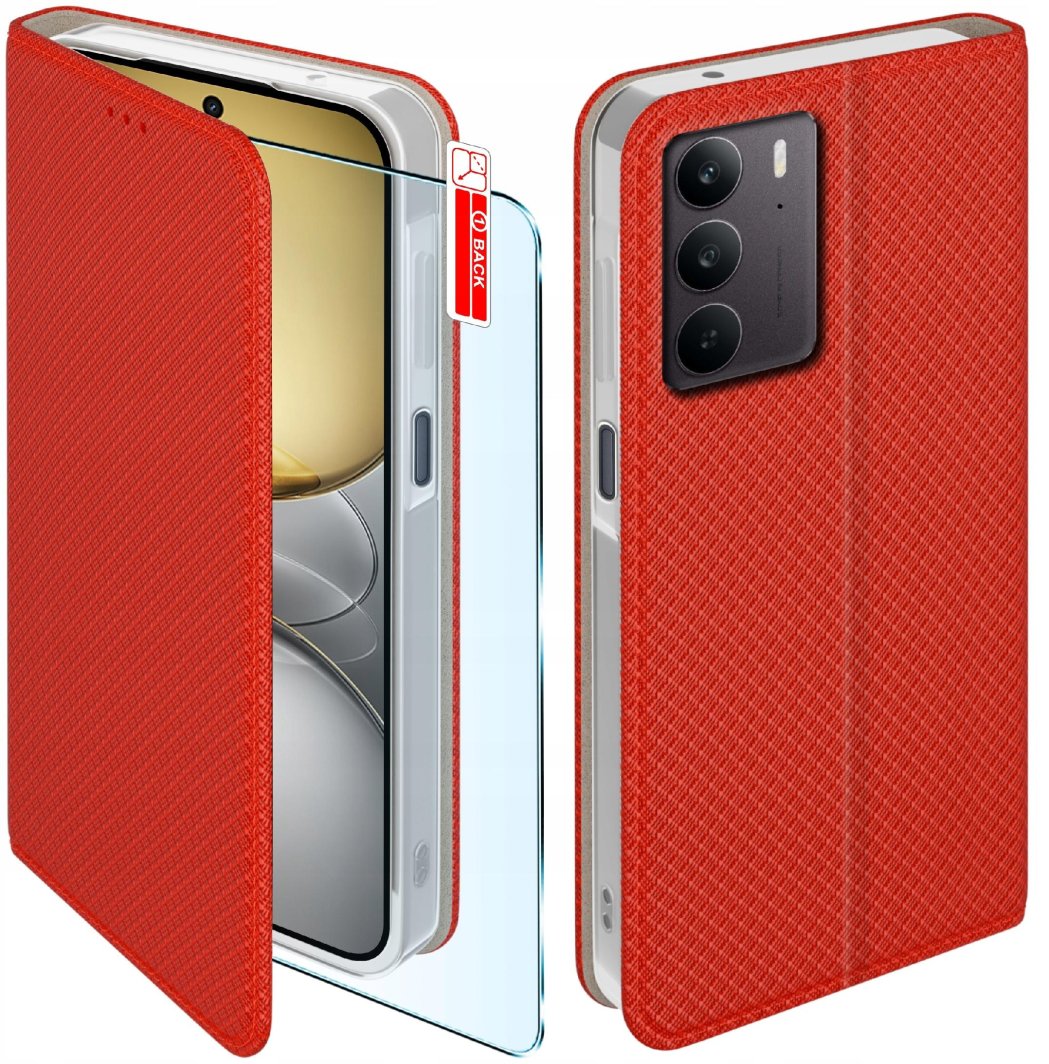 Etui z klapką do Realme C75 Zamykane Czerwone Futerał + Szkło 9H