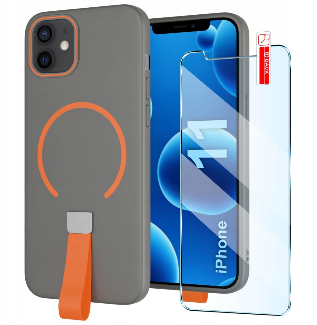 Etui z Paskiem na palec Matowe SZARE do iPhone 11 |do MagSafe +Szkło