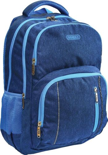 Szkolny plecak uszyty z gładkiego materiału o strukturze jeansu dostępny w pięciu atrakcyjnych kolorystykach. Jego optymalne wymiary sprawiają, że sprawdzi się równie dobrze w szkole jak i na wycieczce. Jest lekki i pojemny, wykonany z wysokiej jakości materiałów to wszystko składa się na niepowtarzalną wygodę w użytkowaniu go na co dzień. Cechy plecaka: - sztywne, ergonomicznie ukształtowane, oddychające plecy - szerokie, grube szelki oddychające z regulacją - wzmocniony spód - pojemna komora główna zamykana na podwójny suwak - przednia komora zapinana na suwak - przednia kieszeń zapinana na suwak, idealna na śniadaniówkę - przednia kieszonka zapinana na suwak dopasowana do drobiazgów - dwie boczne kieszenie z podwójnej siatki na bidon lub akcesoria - delikatne odblaski - solidne, metalowe suwaki z logiem STREET.