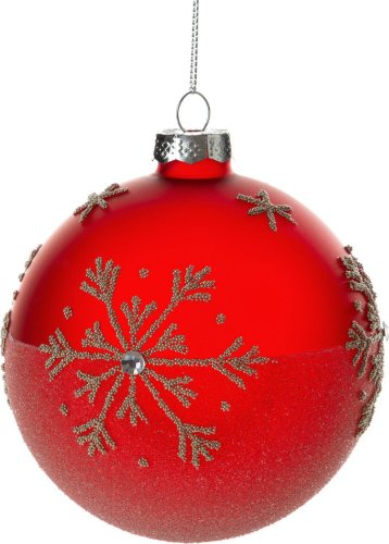 Bombka szklana zdobiona wzorem z brokatu kolor: czerwony, Skład: 100% szkło