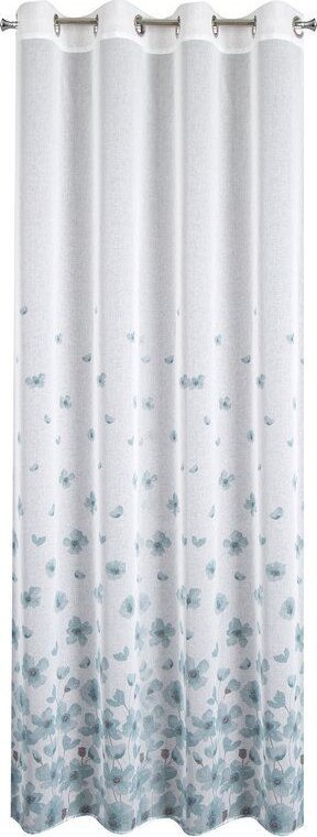 Eurofirany Zasłona na przelotkach w kwiaty SANDREA 140X250 biała + turkusowa