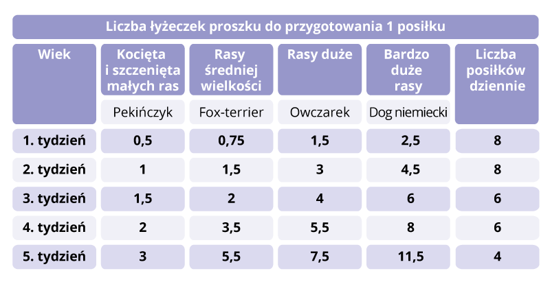 Liczba łyżeczek proszku do przygotowania 1 posiłku: