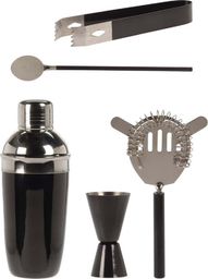 Zestaw barmański do koktajli i drinków. Całość wykonana ze stali nierdzewnej w kolorze czarno-srebrnym w połysku. Shaker pozwala w łatwy sposób wymieszać ze sobą składniki. Zestaw będzie świetnym pomysłem na prezent. Zestaw zawiera 5 elementów:- shaker 22 cm,- filtr 17,5cm x 9 cm , - sitko, - miarka 9cm x 5 cm,- łyżeczka 20 cm- szczypce do lodu 16,5 cm...