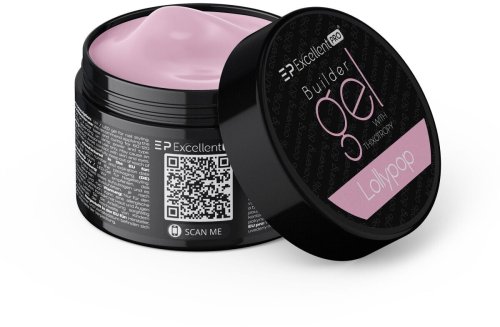 EXCELLENT PRO BUILDER GEL WITH THIXOTROPY LOLLYPOP - to cukierkowo różowy żel z kryciem na poziomie 90%. Tak jak inne żele z tej linii, również i ten posiada właściwości tiksotropowe, co czyni pracę łatwiejszą i przyjemniejszą. Dzięki tym właściwościom żel świetnie się samopoziomuje, ale nie zalewa skórek, co pozwala na wydłużony czas pracy. Lollypop jest twardym żelem, który doskonale sprawdzi się w bardzo długich przedłużeniach na tipsie oraz szablonie. Jego konsystencja i właściwości pozwalają również na pracę nim w stylizacjach wykonywanych przy użyciu dual form.