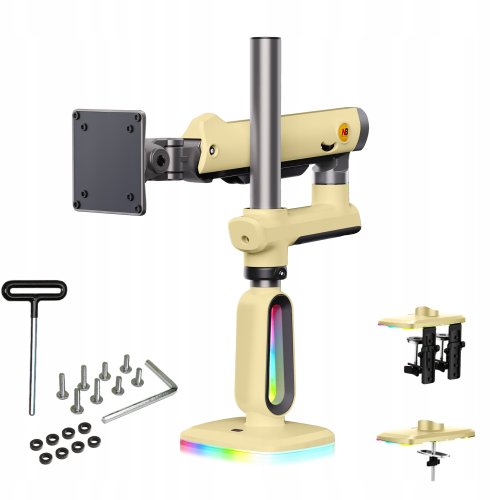 F7-XD Sunrise Yellow Podświetlenie RGB Gamingowy mocny uchwyt biurkowy do dużych monitorów 32-60 cali
