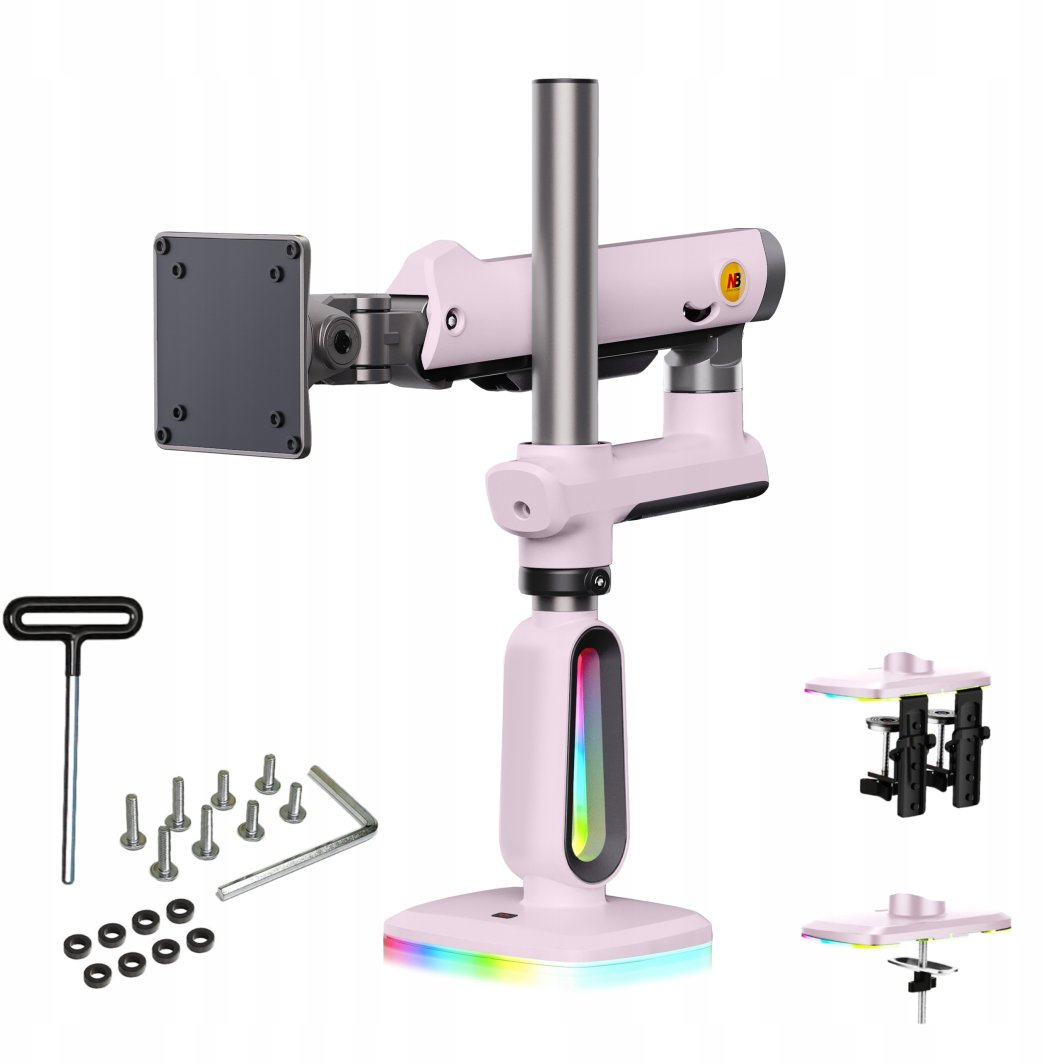 F7-XJ Sakura Pink Podświetlenie RGB Gamingowy mocny uchwyt biurkowy do dużych monitorów 32-60 cali