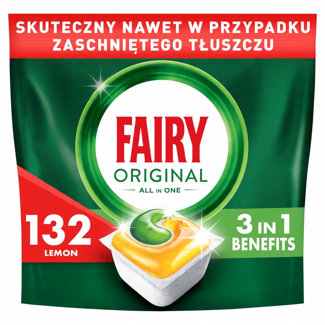 Kapsułki do zmywarki Fairy Original All In One to nowoczesne rozwiązanie, które gwarantuje znakomite rezultaty czyszczenia naczyń już za pierwszym razem. Dzięki zaawansowanej formule, skutecznie eliminują nawet najbardziej uporczywy zaschnięty tłuszcz, pozostawiając naczynia lśniące czystością. Wybierz Fairy, aby każdego dnia cieszyć się nieskazitelnymi naczyniami!