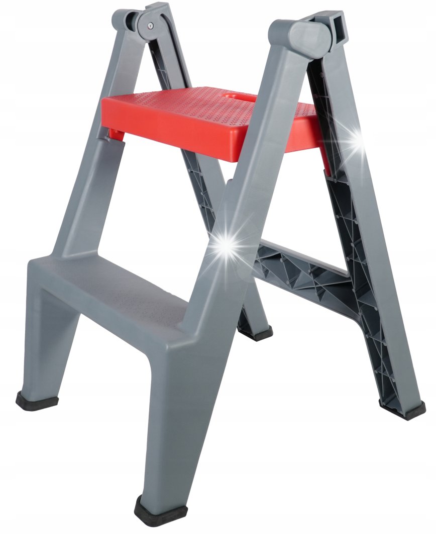 Drabinka została wyposażona w gumowe nóżki, które zwiększają jej stabilność na różnych rodzajach podłoża. Dzięki temu, możesz korzystać z niej w warsztatach, magazynach czy na zewnątrz, mając pewność, że nie przewróci się podczas użytkowania.