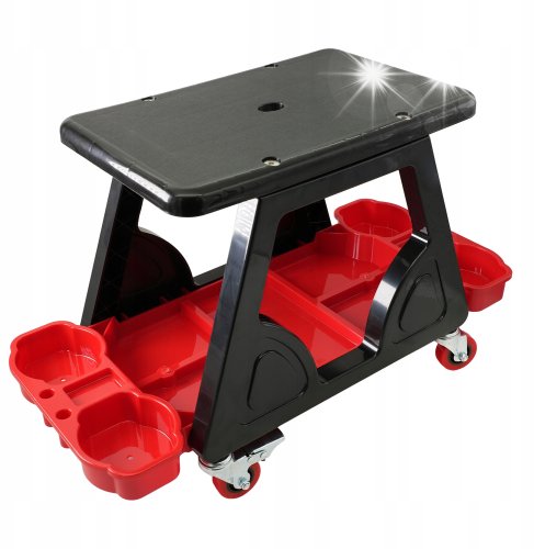 Wyposażony w zwrotne kółka, taboret umożliwia swobodne przemieszczanie się wokół pojazdu bez potrzeby wstawania. Dzięki temu prace serwisowe stają się bardziej efektywne, a Ty zyskujesz pełną swobodę ruchu podczas wykonywania zadań.