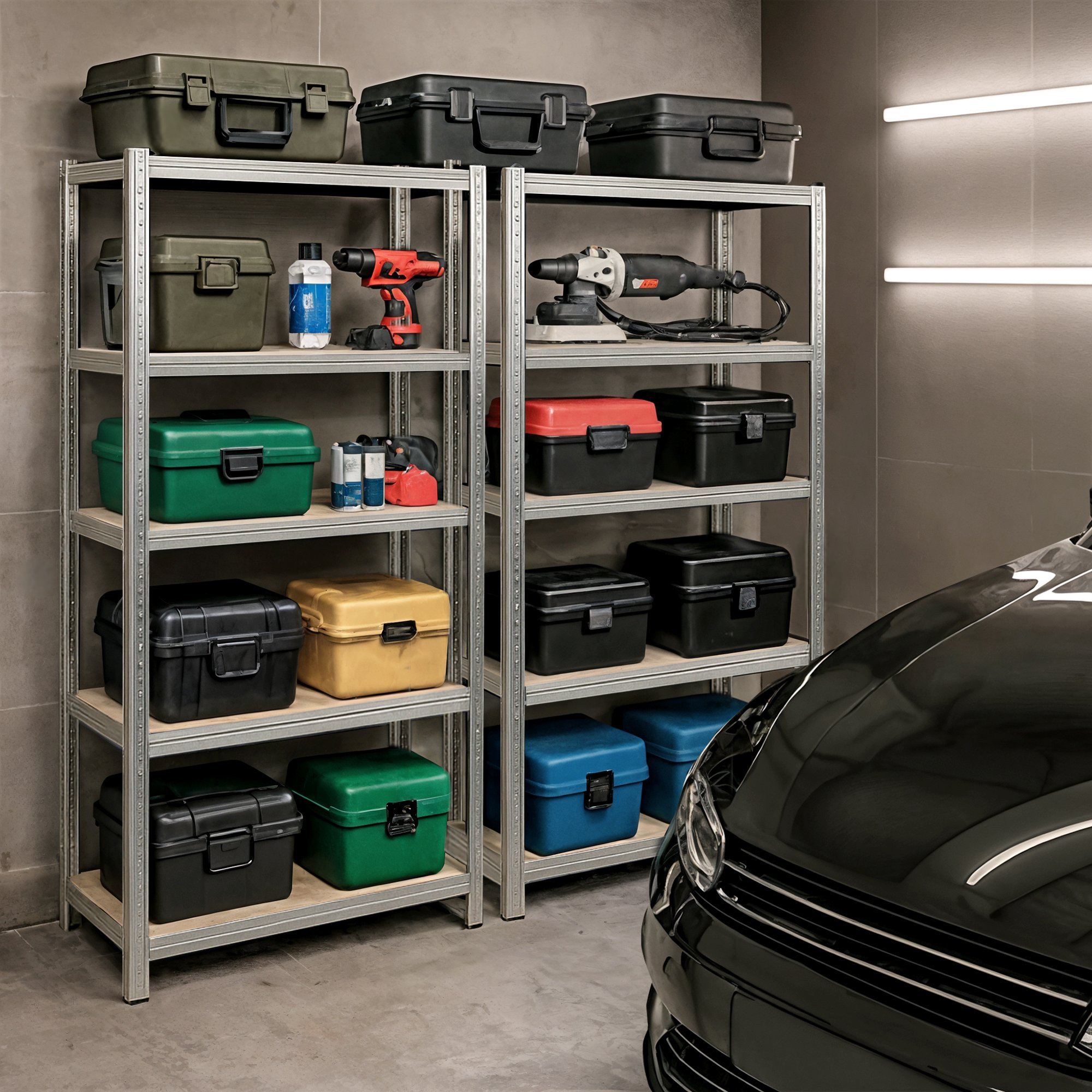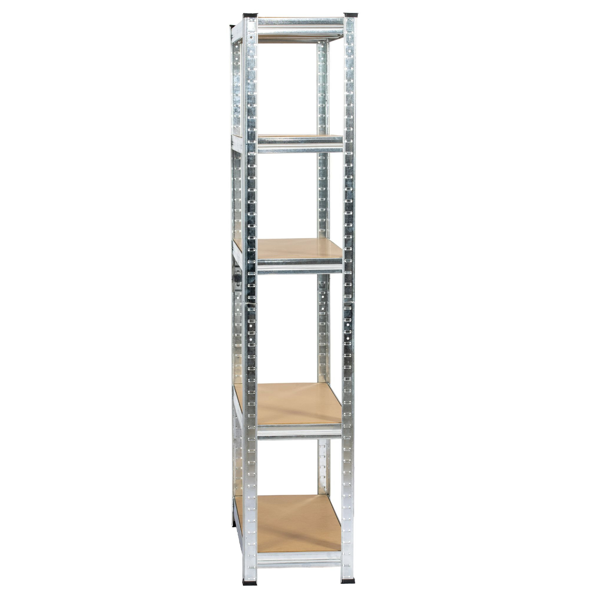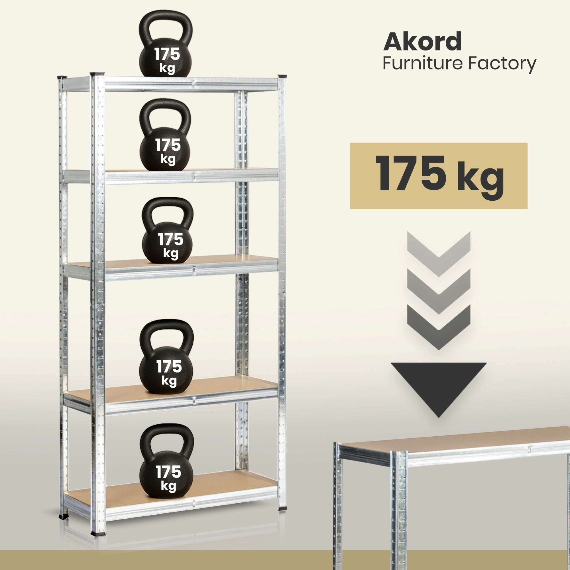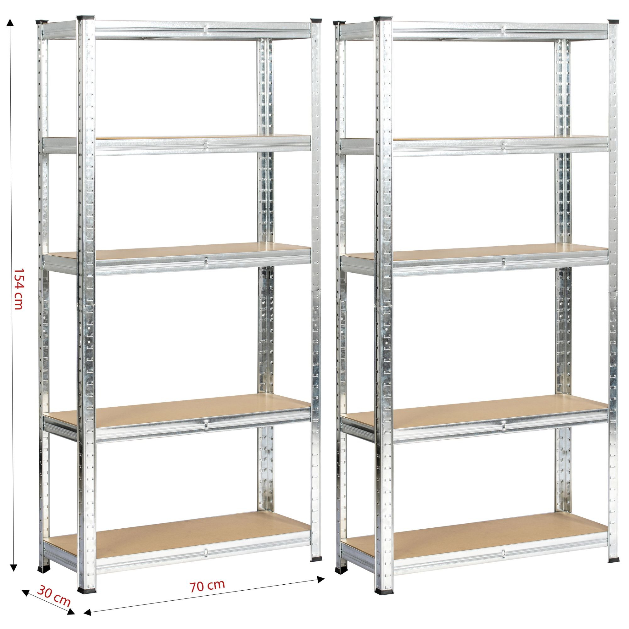 Zestaw metalowych regałów magazynowych to idealne rozwiązanie do przechowywania w garażach, warsztatach, komórkach lokatorskich oraz pomieszczeniach gospodarczych. Kolor srebrny galwanizowany regałów zapewnia elegancki wygląd i wytrzymałość. Każdy regał o szerokości 70 cm i wysokości 154 cm wyposażony jest w półki wykonane z wytrzymałej płyty MDF, co gwarantuje nośność do 175 kg na półkę.