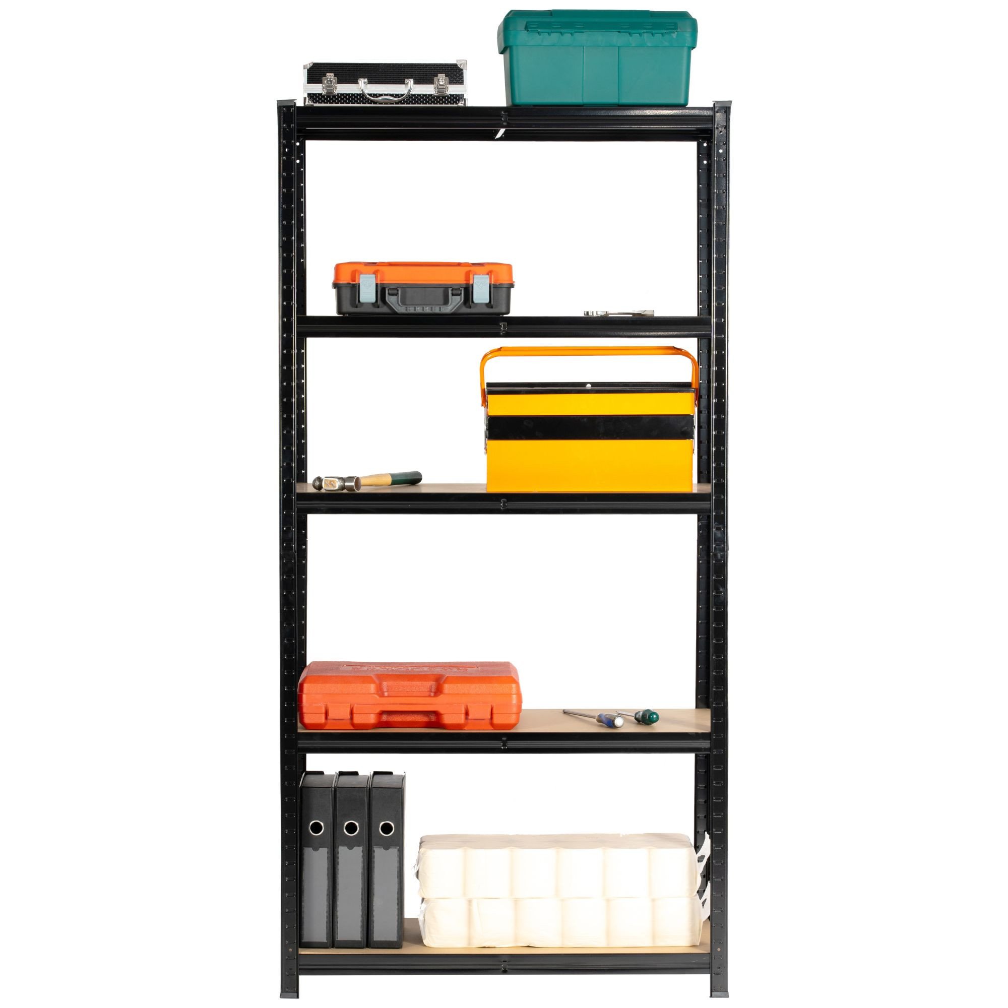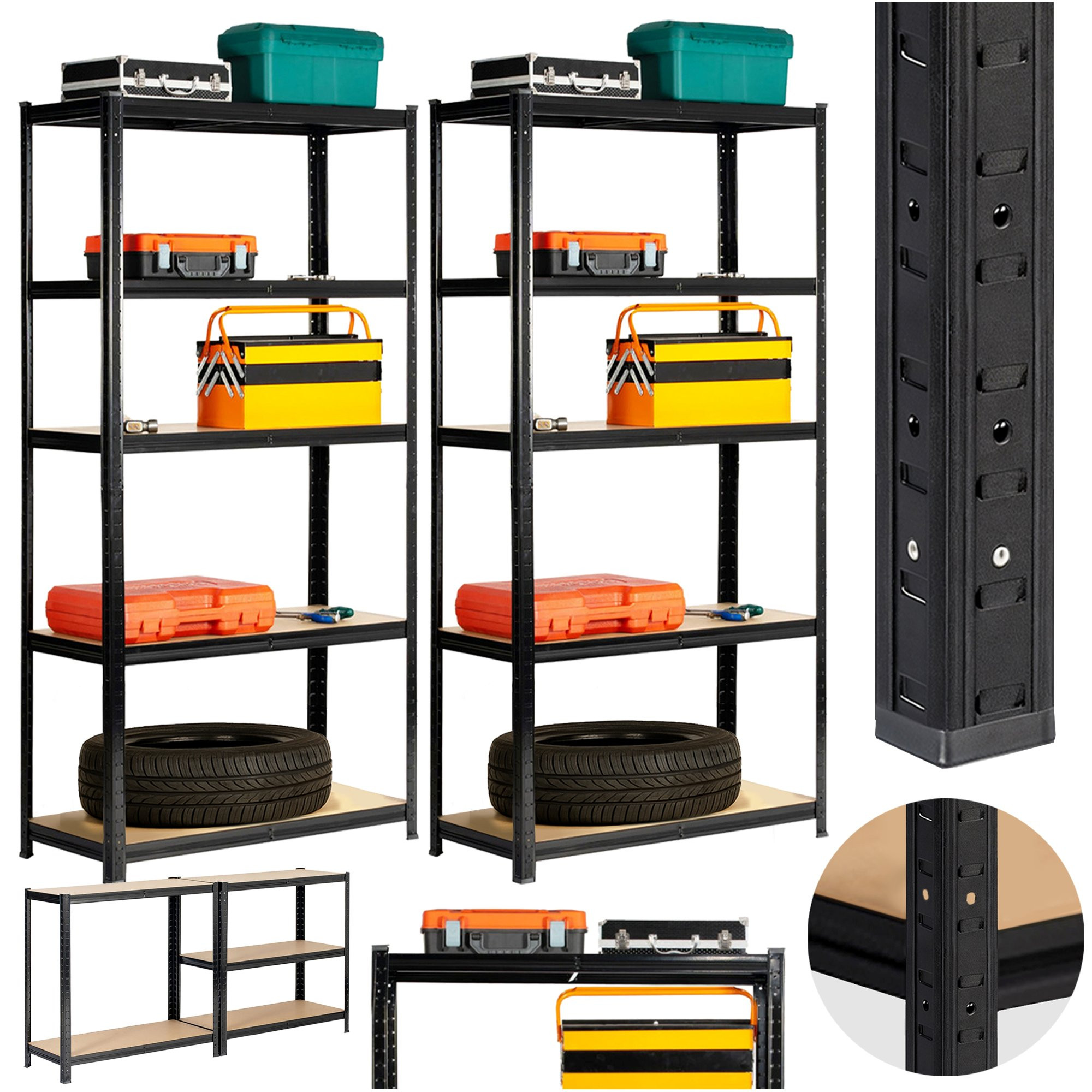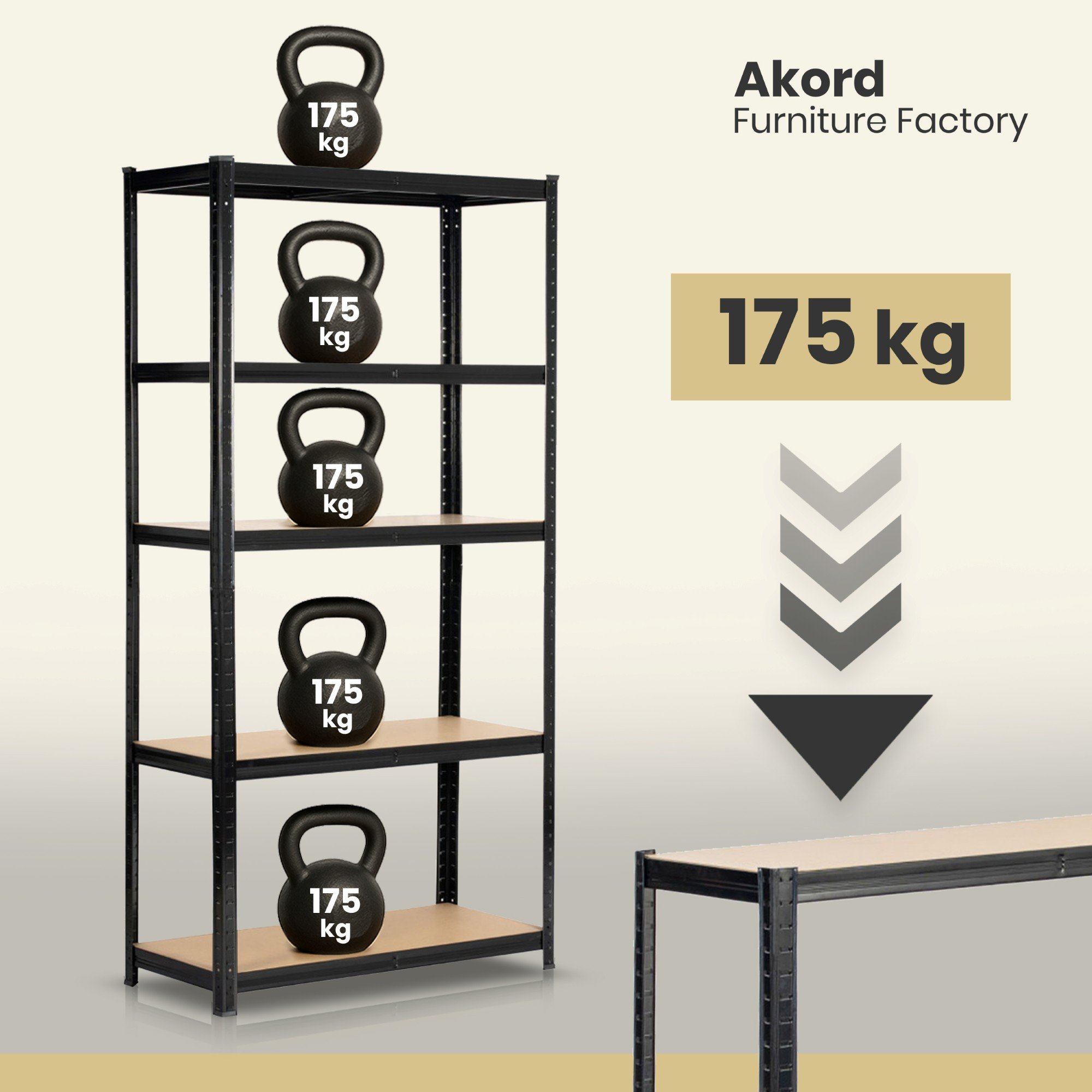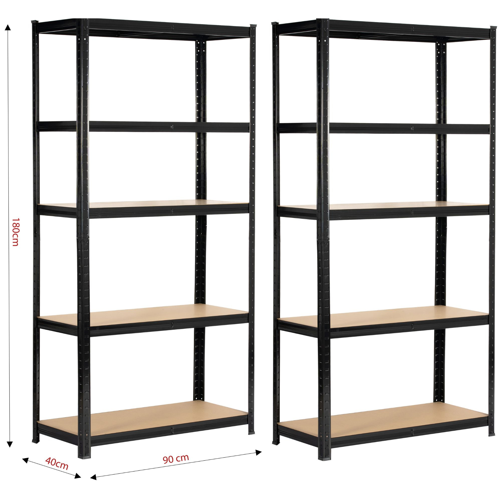 Zestaw regałów metalowych o wymiarach 90x40x180 cm w kolorze czarnym to doskonałe rozwiązanie do przechowywania w różnych miejscach, takich jak garaże, warsztaty, komórki lokatorskie oraz pomieszczenia gospodarcze. Dzięki stalowej konstrukcji i półkom wykonanym z wytrzymałej płyty MDF, regały te cechują się dużą trwałością i odpornością na obciążenia. Każda półka ma nośność wynoszącą 175 kg, co sprawia, że idealnie nadają się do przechowywania sprzętu, narzędzi oraz innych akcesoriów.