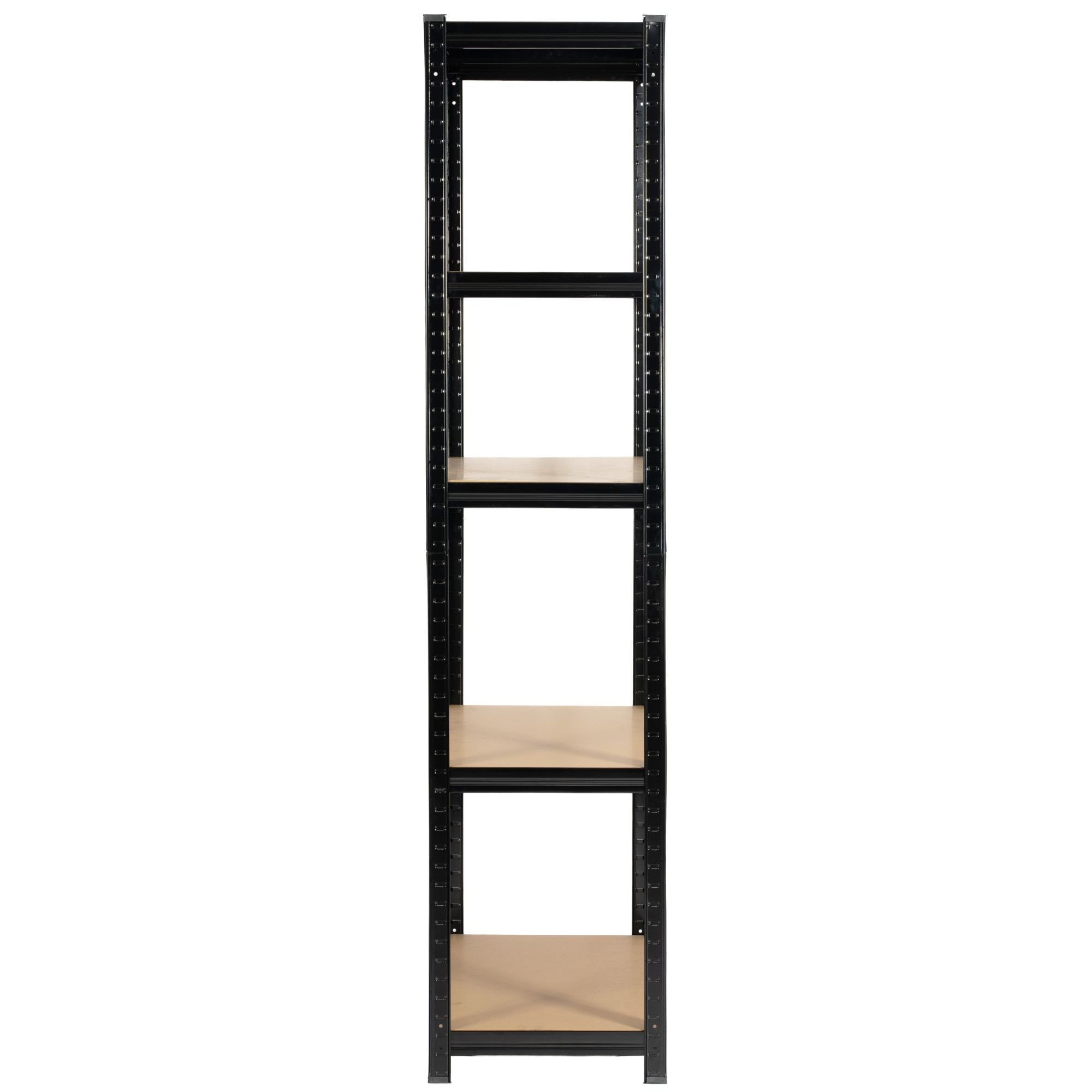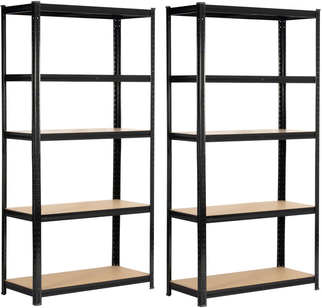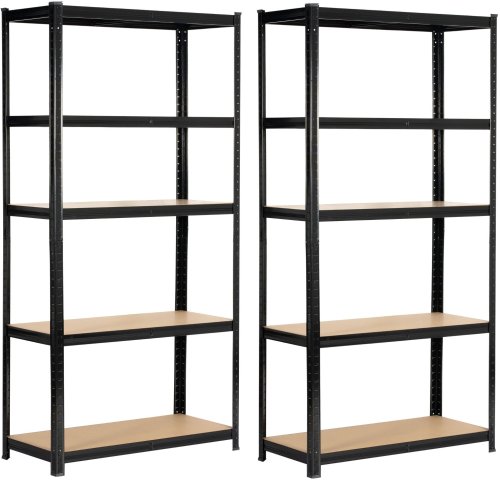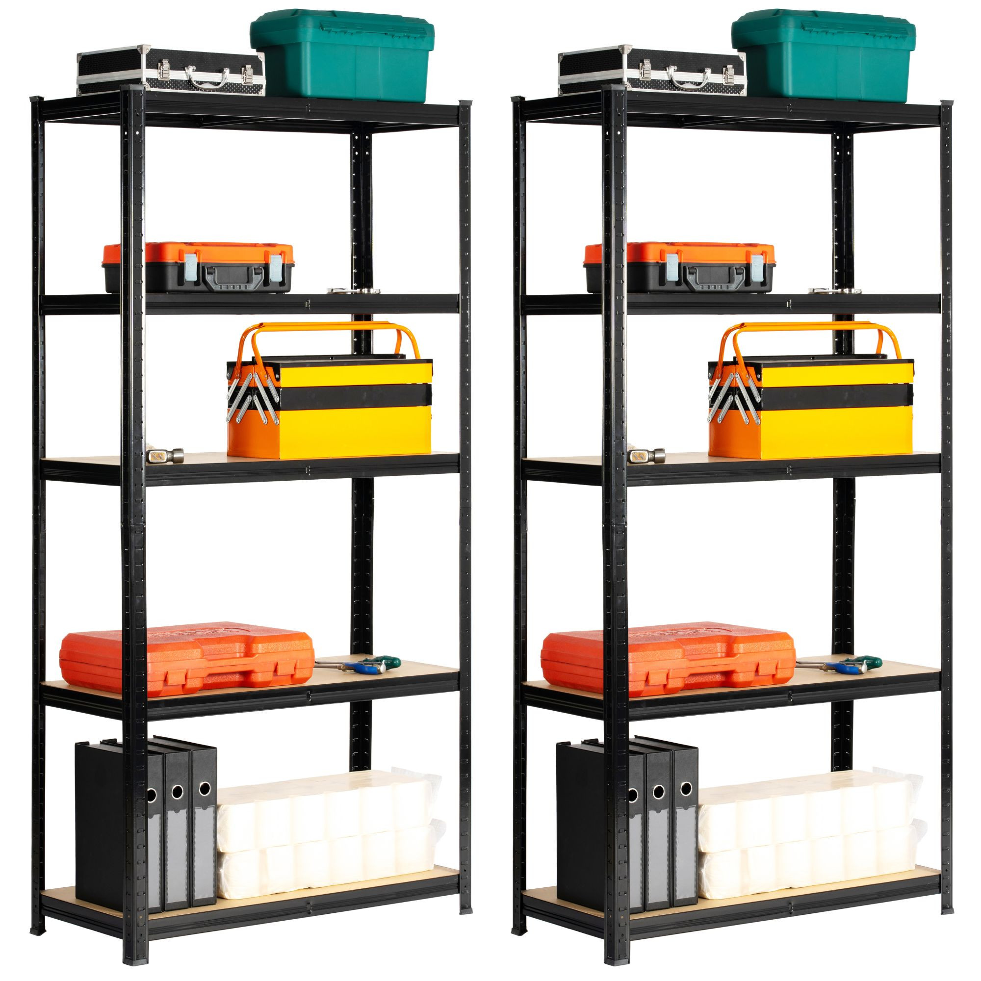 Zestaw regałów metalowych o wymiarach 90x40x180 cm w kolorze czarnym to doskonałe rozwiązanie do przechowywania w różnych miejscach, takich jak garaże, warsztaty, komórki lokatorskie oraz pomieszczenia gospodarcze. Dzięki stalowej konstrukcji i półkom wykonanym z wytrzymałej płyty MDF, regały te cechują się dużą trwałością i odpornością na obciążenia. Każda półka ma nośność wynoszącą 175 kg, co sprawia, że idealnie nadają się do przechowywania sprzętu, narzędzi oraz innych akcesoriów.