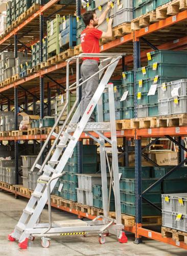 Drabina magazynowa 5 stopniowa FARAONE MF.TS 150Wysokość robocza 3,28m SICIUR STOP W ZESTAWIE! Drabina magazynowa FARAONE z serii MF.TS to konstrukcja przeznaczona do intensywnych prac magazynowych, dzięki wysokiej jakości wykonania konstrukcja ta spełniają wszystkie europejskie normy i wymogi bezpieczeństwa. Drabina magazynowa MF.TS standardowo wyposażona jest w zestaw zabezpieczeń SICIUR STOP, który umożliwia przesuwanie drabin na 4 kółkach z ciężarem powyżej 20 kg i maksymalnie 100 Kg. Drążek zabezpieczający uniemożliwia wejście, kiedy drabina stoi na kółkach i zwalnia dostęp. Dane teczniczne Najważniejsze paramtery techniczne: - producent: FARAONE – Włochy, Polska - zastosowanie: drabina magazynowa - obciążenie maksymalne: 150 kg/m2 - platforma robocza z ryflowanego antypoślizgowego aluminium - pozycja robocza pracownika na platformie zabezpieczona z każdej strony barierką aluminiową - zasięg roboczy: min. – 3,28m max. – 3,76m - obciążenie maksymalne: 150 kg/m2 - kąt nachylenia stopni: 60° - wymiar platformy roboczej: szerokość – 52cm x długość – 62cm - system automatycznej blokady drabiny SICIUR STOP- stopnie do wchodzenia o szerokości 15cm - przejezdna (wyposażona standardowo w 4 koła) - szeroki stabilizator - certyfikat EN-131 - gwarancja producenta 5 lat - drabina dostarczana jest z dokumentacją techniczną i deklaracją bezpieczeństwa Galeria zdjęć