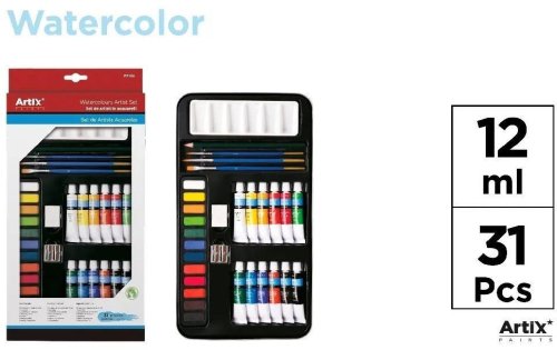 Odkryj radość tworzenia z zestawem farb akwarelowych Artix, który składa się z 31 elementów, idealnych do rozwijania artystycznych pasji zarówno dzieci, jak i dorosłych. Ten kompletny zestaw umożliwia swobodne wyrażanie siebie poprzez sztukę, oferując wszystko, co potrzebne do rozpoczęcia przygody z malarstwem.