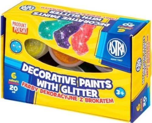 Farby dekoracyjne Astra z brokatem 6 kol x 20 ml STANDARD BOX