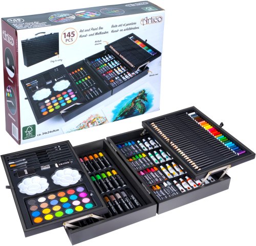 Zestaw ARTICO x145 jest idealny zarówno dla osób, które dopiero zaczynają swoją przygodę z malowaniem, jak i dla tych, którzy mają już doświadczenie. Dzięki różnorodności narzędzi, każdy znajdzie coś dla siebie i będzie mógł rozwijać swoje umiejętności artystyczne.