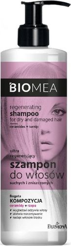 Dzięki połączeniu botanicznych składników z zaawansowanymi technologicznie, znanymi i cenionymi od lat składnikami, produkty z serii BIOMEA wyróżniają się wysoką skutecznością działania oraz dają natychmiastowe efekty. Ultra regenerujący szampon do włosów suchych i zniszczonychma bogatą formułę z rzepą i ceramidami, które zapewnia Twoim włosom wyjątkową miękkość, gładkość, dokładnie je oczyści oraz ułatwi rozczesywanie.
