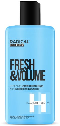 Normalizujący szampon RADICAL HAIR CLINIC Fresh & Volume to doskonałe rozwiązanie dla osób z cienkimi i delikatnymi włosami, które mają skłonność do przetłuszczania się. Dzięki swojej wyjątkowej formule, ten produkt zapewnia długotrwałą świeżość oraz objętość, co sprawia, że włosy stają się mocniejsze i bardziej elastyczne.