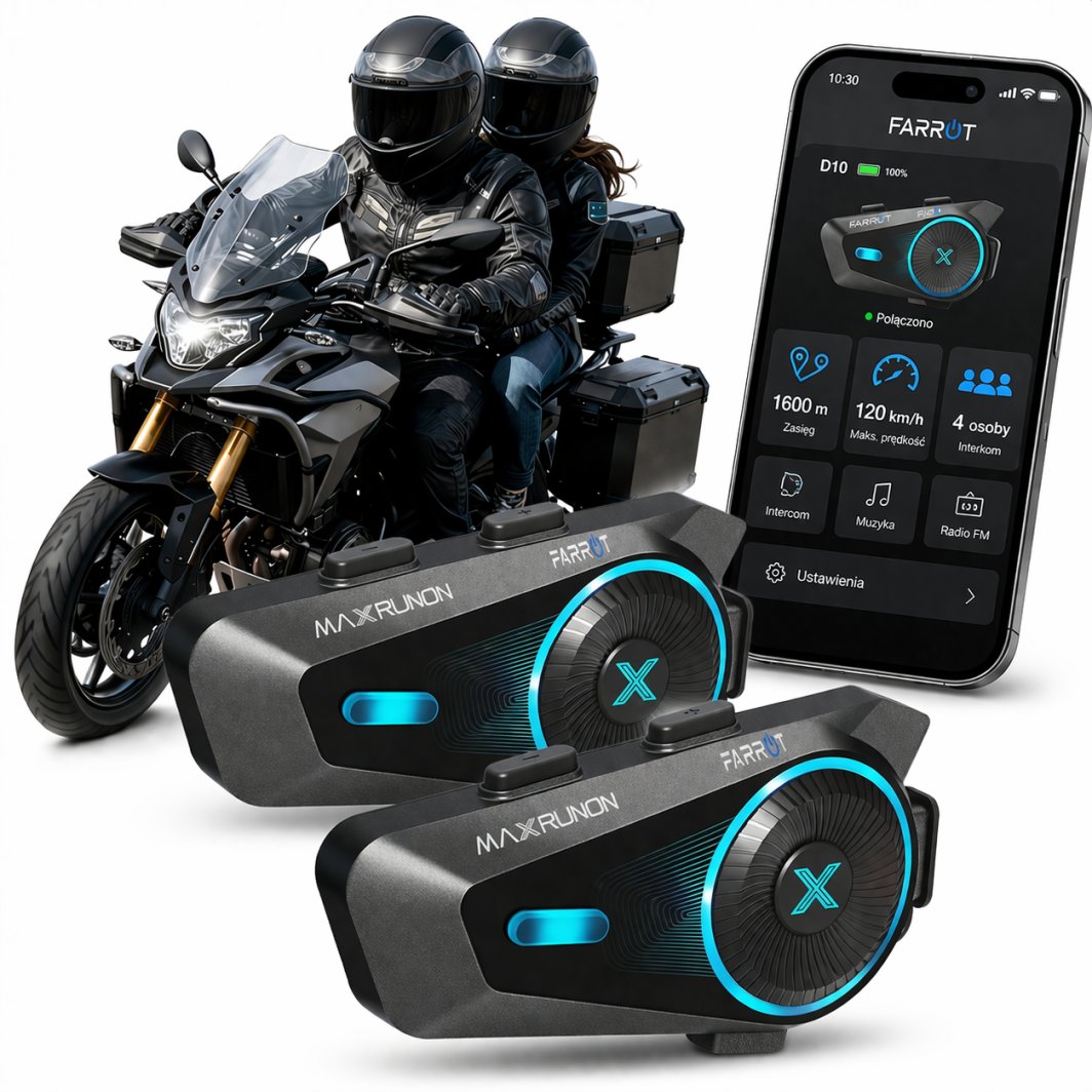 Farrot Interkom motocyklowy zestaw 2 szt Mesh 1.6km bluetooth 5.4 anc 120 km/h do 4 osób radio fm ipx7