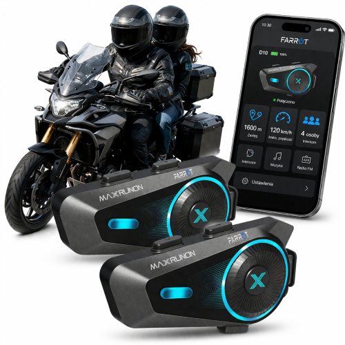 Interkom motocyklowy FARROT Rider D10 to nowatorskie urządzenie, które powstało z myślą o wymagających motocyklistach. Dzięki zaawansowanej technologii Mesh, interkom zapewnia stabilną komunikację dla nawet czterech użytkowników w zasięgu do 1,6 km. To doskonałe rozwiązanie dla tych, którzy cenią sobie wygodę i efektywność podczas jazdy.