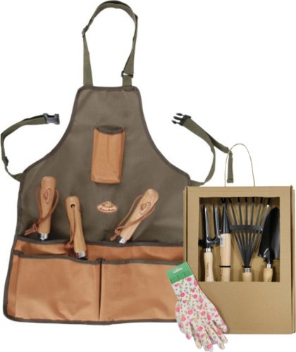 Fartuch ogrodowy + zestaw narzędzi Łopatka Pikownik Grabie