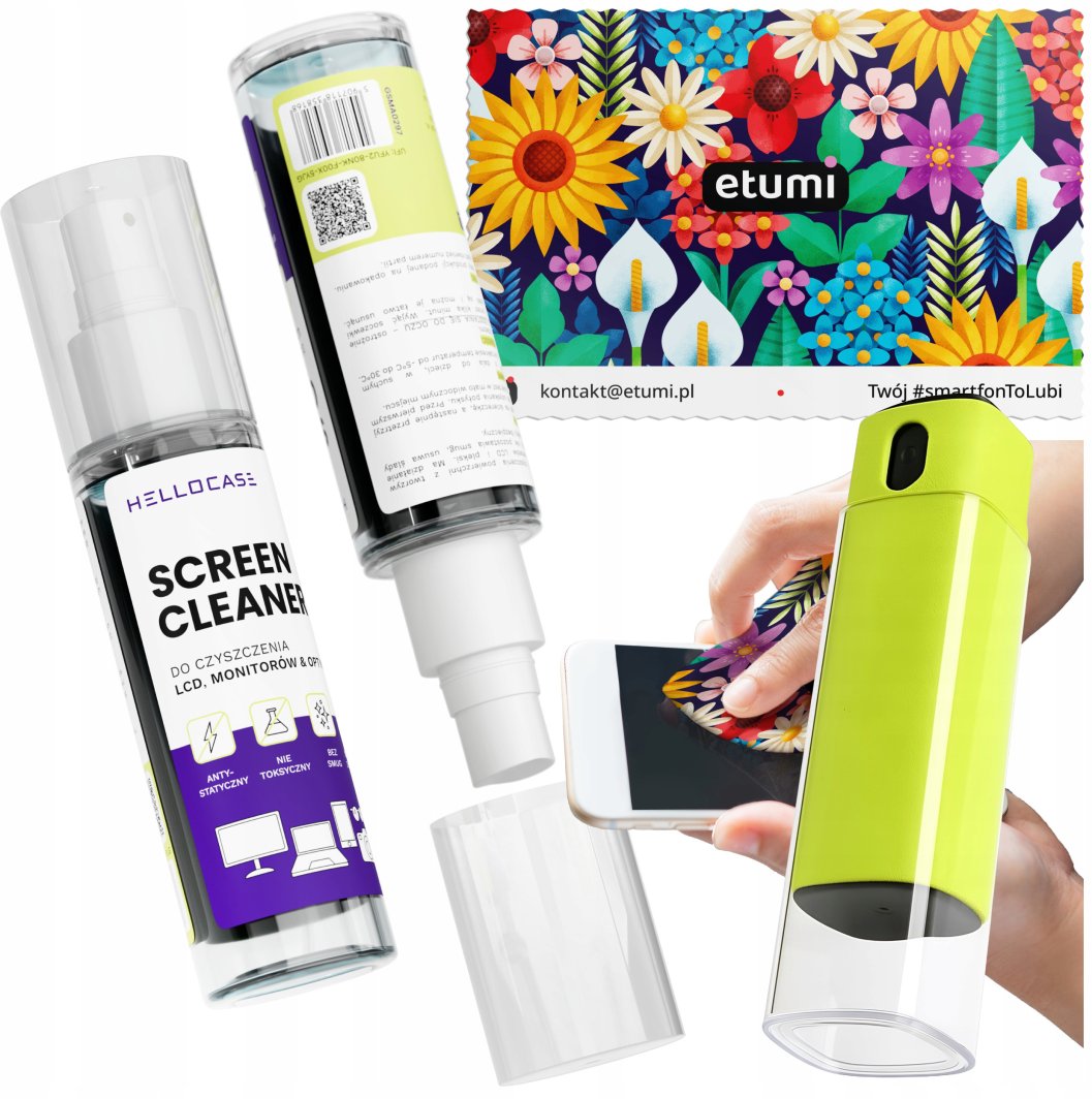 Miękka ściereczka z mikrofibry dołączona do zestawu gwarantuje delikatne, a zarazem skuteczne czyszczenie. Dzięki niej masz pewność, że ekran nie zostanie zarysowany, a proces czyszczenia będzie szybki i efektywny.