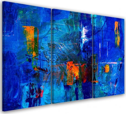 Feeby Obraz 3 częściowy na płótnie, Niebieska abstrakcja ręcznie malowana - 60x40