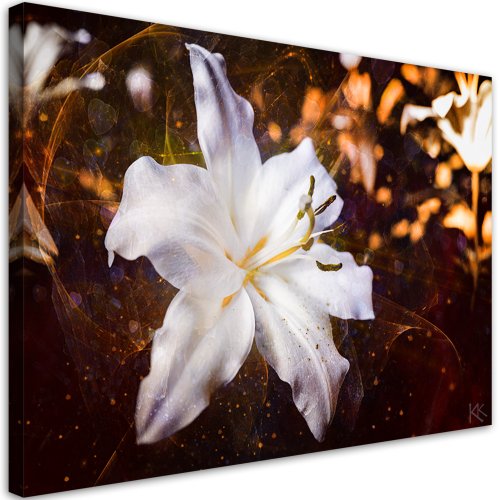 Feeby obraz na płótnie Biała lilia na brązowym tle 60x40 medium