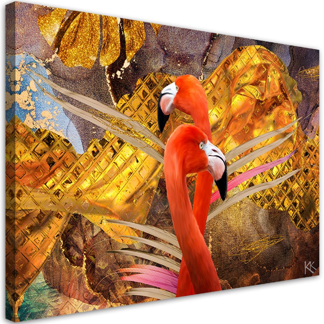 Feeby obraz na płótnie Flamingi na tle ze złota 60x40 medium