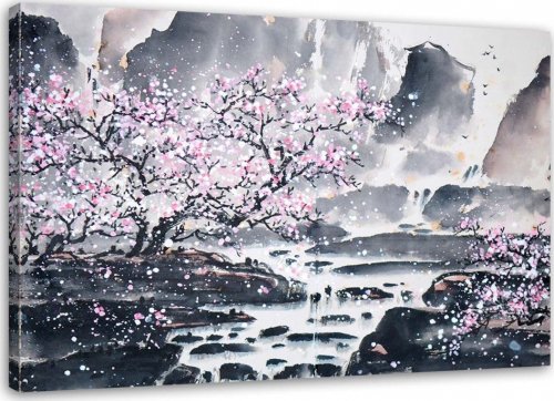 Feeby Obraz na płótnie, Japoński Krajobraz akwarela - 90x60