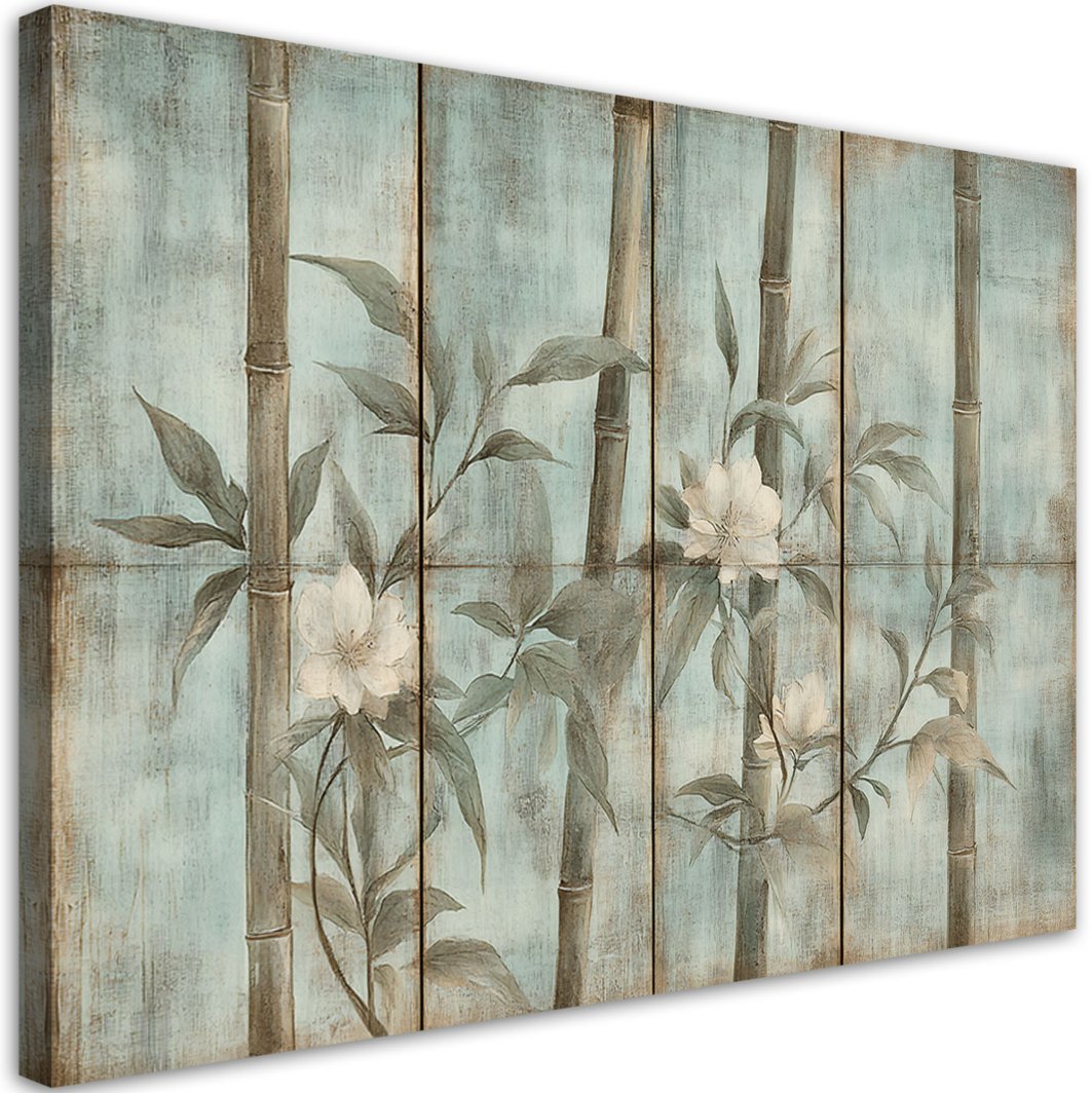 Feeby obraz na płótnie pędy bambusa z kwiatami na tle z fakturą 60x40 medium