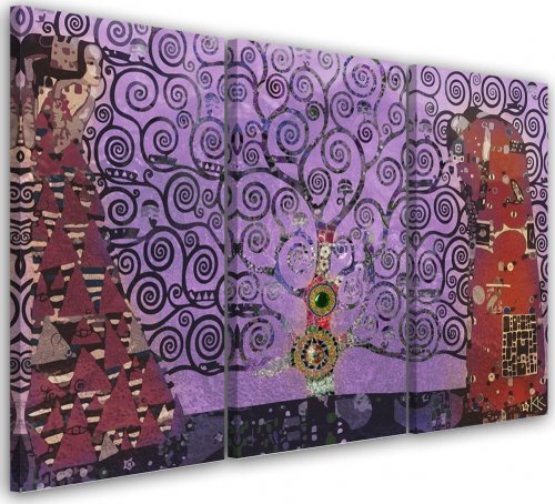 Feeby Obraz tryptyk na płótnie, Fioletowe drzewo życia abstrakcja - 120x80