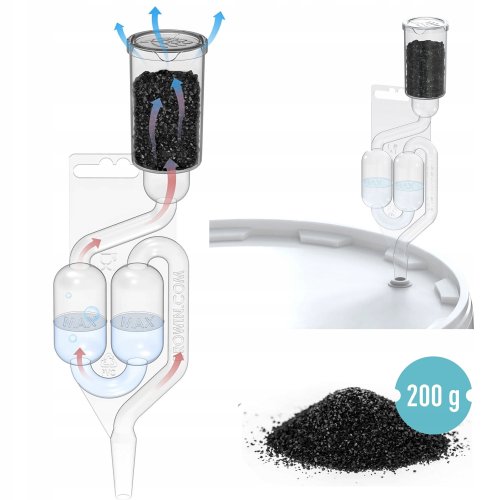 Produkt charakteryzuje się niezwykłą prostotą montażu. Wystarczy umieścić rurkę fermentacyjną w pojemniku z wodą i nałożyć filtr wypełniony węglem. Użytkownik powinien regularnie kontrolować drożność filtra oraz wymieniać węgiel w zależności od intensywności fermentacji, co czyni go wygodnym rozwiązaniem dla każdego domowego piwowara.