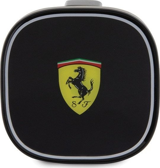 Podkreśl wnętrze swojego samochodu ekskluzywnym dodatkiem. Ładowarka zachwyca minimalistycznym stylem i wykonaniem z najwyższej jakości materiałów (ABS i aluminium). Centralnie umieszczone, ikoniczne logo Ferrari – żółta tarcza z wierzgającym koniem – nadaje jej elitarnego charakteru i jest gwarancją autentyczności. W zestawie znajduje się kabel USB-C, który należy podłączyć do odpowiedniej ładowarki samochodowej (np. QC 3.0, sprzedawana oddzielnie) dla uzyskania pełnej mocy ładowania.