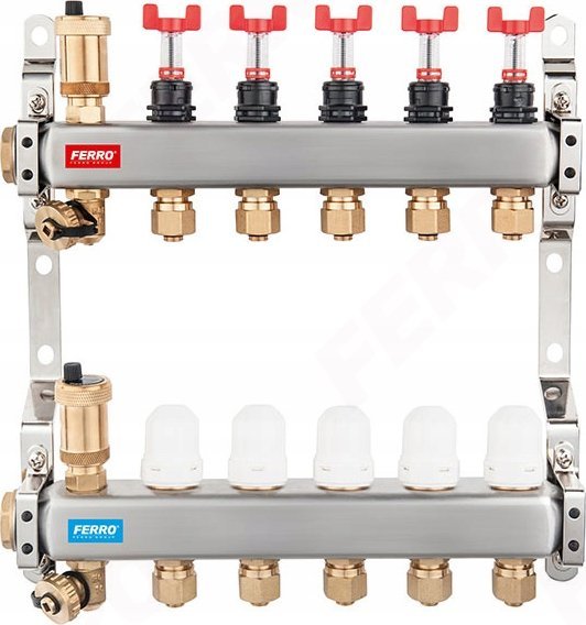 Rozdzielacz Ferro jest doskonałym rozwiązaniem do różnorodnych instalacji grzewczych. Jego konstrukcja umożliwia łatwe podłączenie do systemów ogrzewania podłogowego oraz mieszanych, co znacząco ułatwia pracę instalatorów. Dzięki zastosowaniu gumowych uchwytów, możliwe jest zminimalizowanie wibracji oraz hałasu, co wpływa na komfort użytkowania.