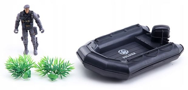 W ZESTAWIE: FIGURKA ŻOŁNIERZA OK. 11 CM., PONTON, AKCESORIA, WYMIARY OPAKOWANIA: 24 X 17 X 7 CM., 3+