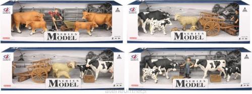 4 WZORY, W ZESTAWIE: 4 ZWIERZĄTKA, FIGURKA ROLNIKA, AKCESORIA, WYM. OPK: 30 X 14 X 10 CM., 3+