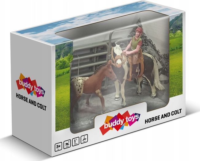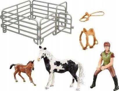Stwórz swoją własną hodowlę koni dzięki zestawowi BGA 1012, w skład zestawu wchodzi ogrodzenie, dzięki któremu stworzysz miejsce dla swoich koni, Amazonka, źrebak oraz koń z siodłem