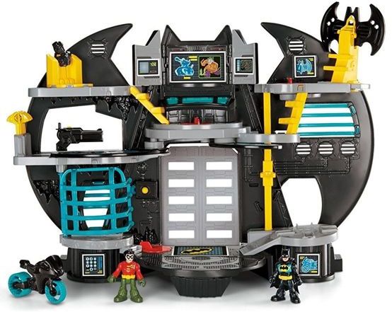 Zestaw Jaskinia Batmana, wyprodukowany przez powszechnie znaną i szanowaną firmę Fisher-Price, pochodzi z serii zabawek Imaginext DC Super Friends. Jaskinia Batmana ma kształt logo Batmana i została wykonana w kolorze czarnym z szarymi, żółtymi i turkusowymi elementami.