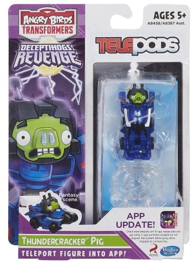 Przenieś ulubione postacie ptaków i świnek ze świata realnego wprost do nowej aplikacji Angry Birds Transformers. Postaw figurkę na Telepodzie, umieść ją na smartfonie lub tablecie, aby zeskanować postać do aplikacji. Natychmiast będziesz mógł zagrać jako transformujący się ptak lub świnka! Figurka transformuje się z trybu robota w samochód, więc natychmiast możesz ruszyć do akcji z nowymi bohaterami serii Angry Birds Transformers!