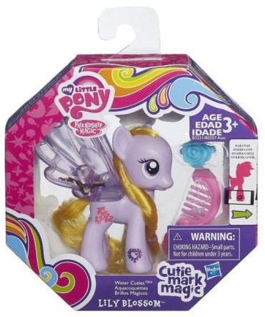 My little Pony to kucyki z czarodziejskiegoświata fantazji, które uwielbiają się bawić, zawsze chętnie służą pomocą ipotrafią słuchać jak nikt inny. To właśnie dlatego cieszą się coraz większąsympatią dziewczynek na całym świecie i sprawiają, że spędzają one niesamowitechwile podczas zabawy z kucykowymi przyjaciółkami. Kucyki z serii "Cutie MarkMagic Water Cuties" mienią się brokatem i mają niezwykłe znaczki w środku! Gdydelikatnie poruszy się kucykiem, jego brokatowe znaczki zaczynają wirować.