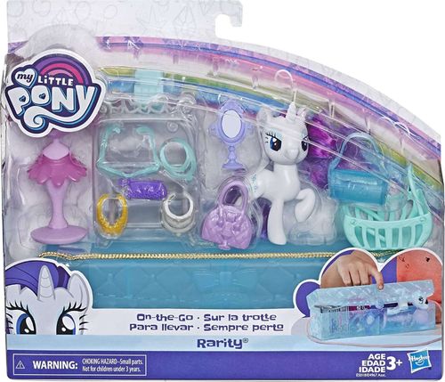 Rarity lubi się ciągle przebierać. Można jej ubrać wiele akcesoriów i zebrać je do koszyka, aby mogła je zakupić przy dołączonej do zestawu kasie. Poukładaj akcesoria na półce. Po skończonej zabawie schować wszystko do pudełka i zabierz ze sobą.
