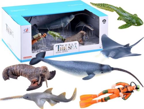 Fantastyczny zestaw stworzeń morskich zachwyci każdego kolekcjonera interesującego się podwodnym światem. Figurki odwzorowują popularne ryby, ssaki morskie. W zestawie znajduje się także płetwonurek z całym ekwipunkiem nurka. Figurki wykonane są z tworzywa sztucznego w kolorach, wzorach i detalach odpowiadających danemu gatunkowi.