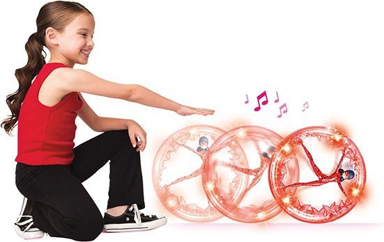 W tym zestawie znajduje się także świetliste koło, w którym można umieścić figurkę i pchnąć a koło poruszając się odtwarza 3 różne melodie i świeci się.