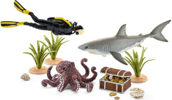 | Wspaniała kolekcja od firmy Schleich. Zestaw figurek odwzorowuje dno morskie, nurka poszukującego skarbów oraz wodne zwierzęta. | ![]() |